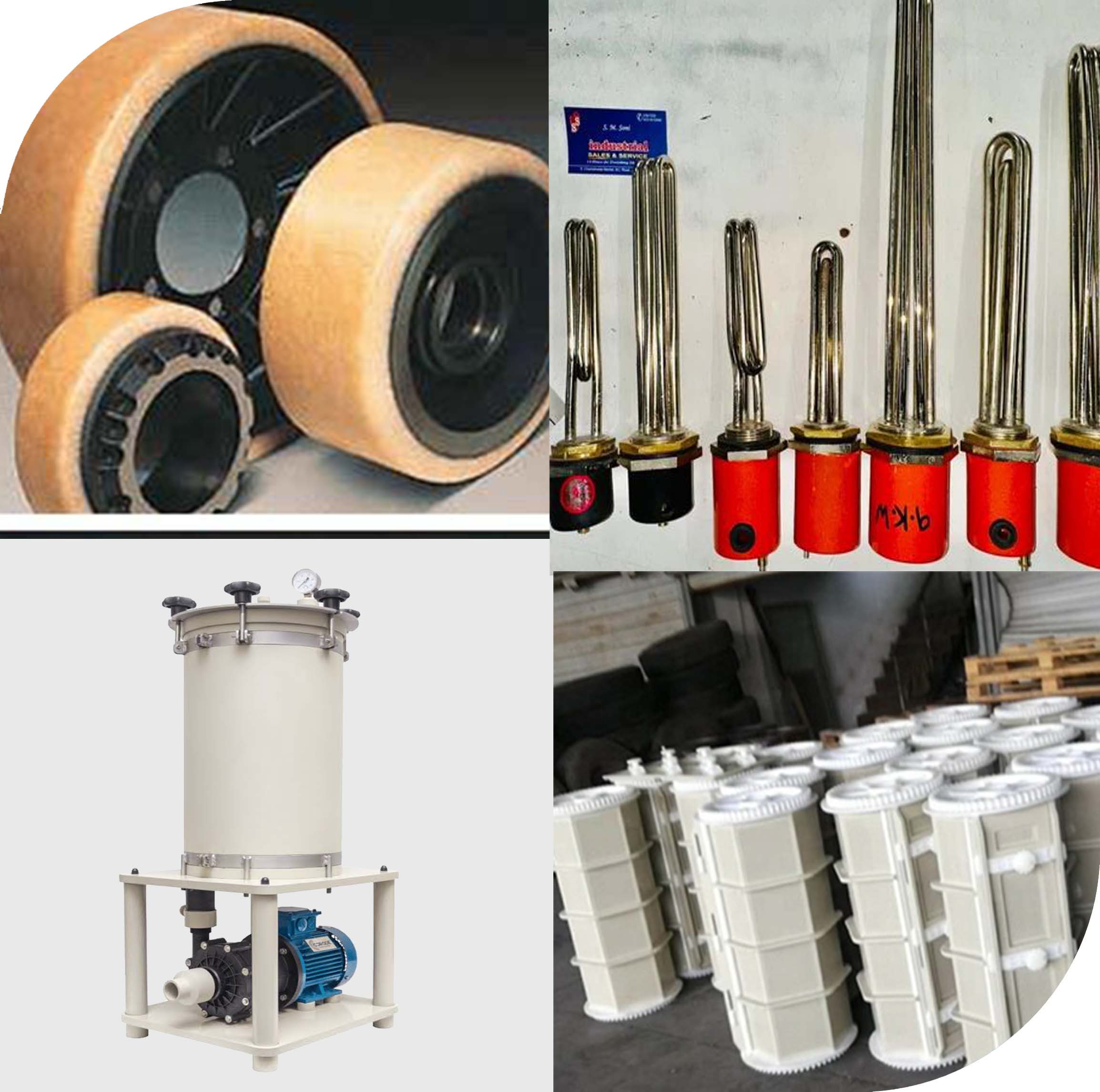 We supply spare parts and equipment for your surface treatment plants to cover typical wear parts such as electrical heaters, transport wagon wheels and hoisting belts, etc. We offer replacement parts to meet the highest of quality standards and your compatibility needs.